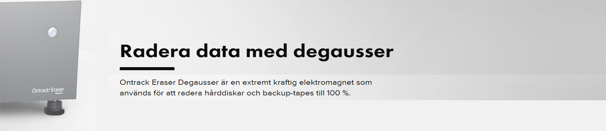 Vi ombesörjer bokning av transport till Ibas i Uppsala och där raderas allt med Ibas Ontrack Eraser Degausser. När raderingen är klar kasseras diskar och band på miljögodkänd elektronikåtervinning och du får ett raderingscertifikat som intygar att raderingen skett med godkänd utrustning och att alla data är permanent raderade.